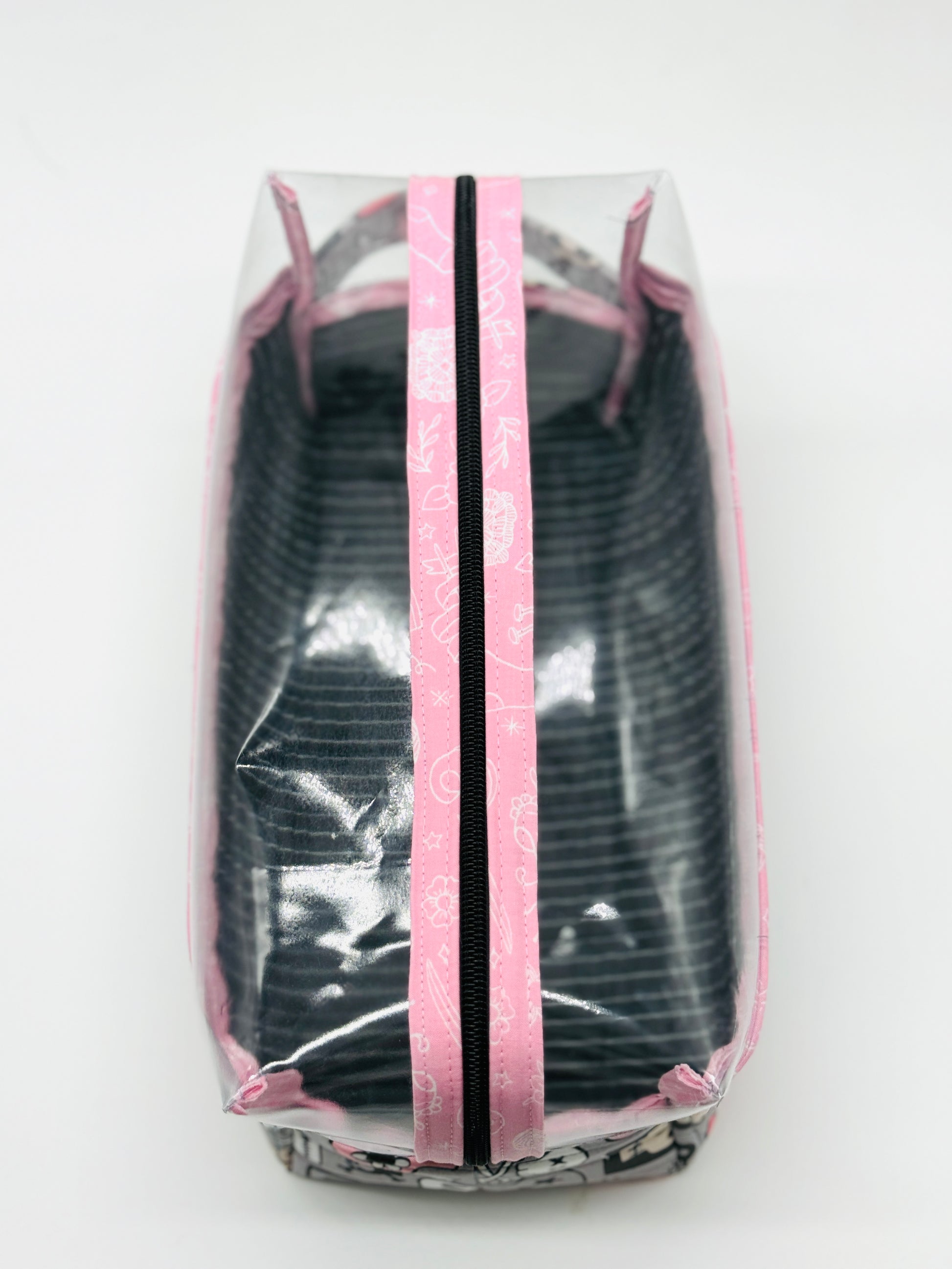 The Box Bag 2.0 size Large is quilted boxy pouch with a fun vinyl window to see the contents inside. Perfect to carry your latest project